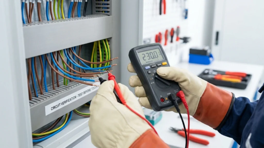 Here’s the fundamental principle that makes colour vision less critical than people think: you never trust what a wire looks like, you test what it does. This is the “prove-test-prove” methodology for safe isolation, but it applies to identification too.