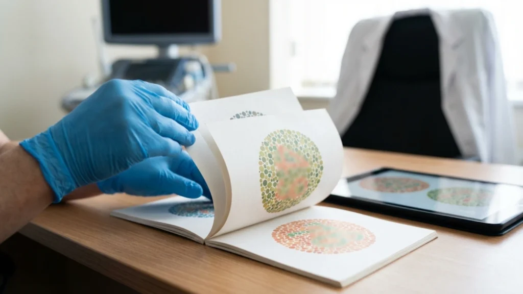 The Ishihara test is standard. You’ll view 38 plates (sometimes fewer in abbreviated versions) containing coloured dots forming numbers or patterns. If you can’t identify the numbers in a certain percentage of plates (thresholds vary, but typically failing more than 3-5 plates indicates red-green deficiency), you “fail” the screening. Here’s what that actually means: you’ve been identified as having colour vision deficiency, not that you’re automatically unfit for the role.