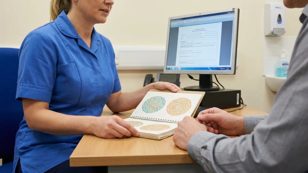 Occupational health professionals consider lighting conditions, use of tools or labelling, and performance in simulated tasks. The approach is functional and risk-led, allowing individuals with minor deficiencies to proceed where safety can be maintained.